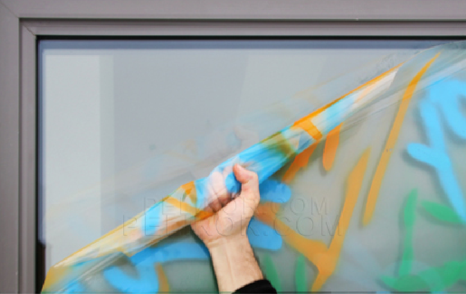 Le Film Anti Graffitis est appliqué sur la face du verre que vous voulez protéger. Si le film est endommagé, il est simplement enlevé et remplacé. Le remplacement est à une fraction du coût d’une nouvelle vitre, et beaucoup plus pratique. C’est un moyen extrêmement rentable de protéger toutes une gamme de surface lisse non poreuse tel que le verre, le marbre, l'acier inoxydable…